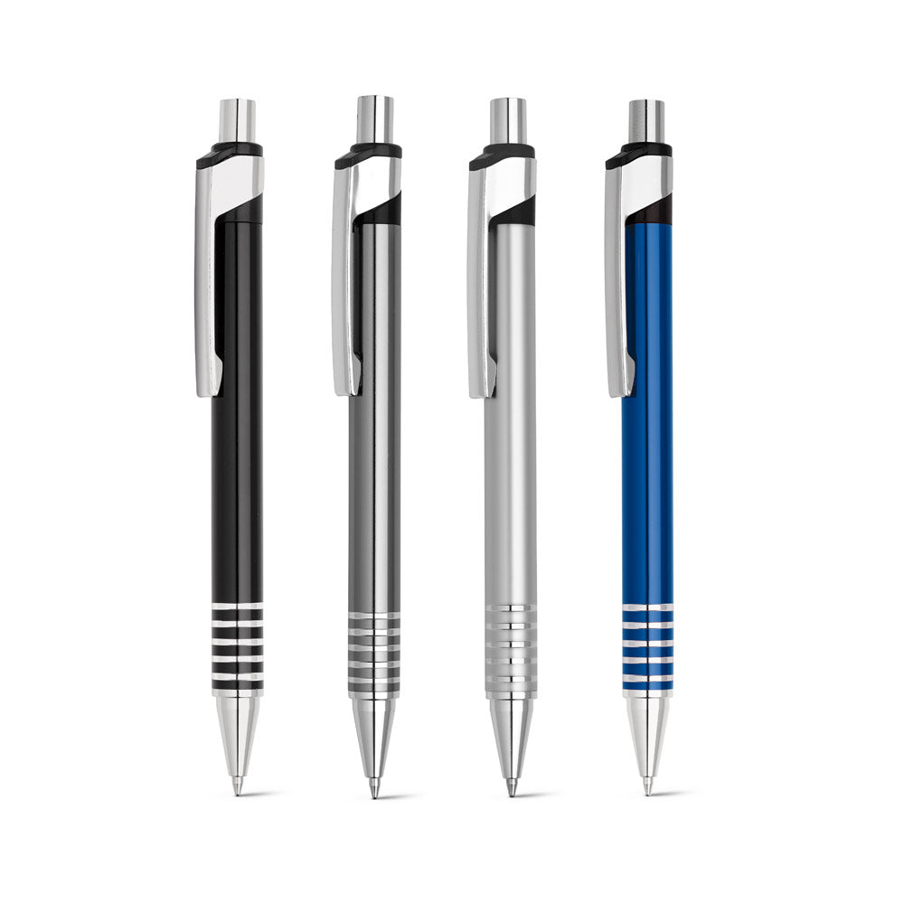 Esferográfica em alumínio. Até 1,5 km de escrita. ø10 x 133 mm